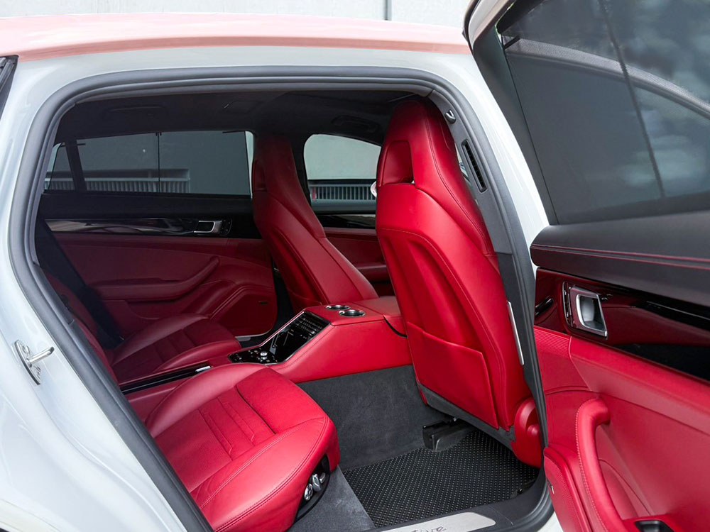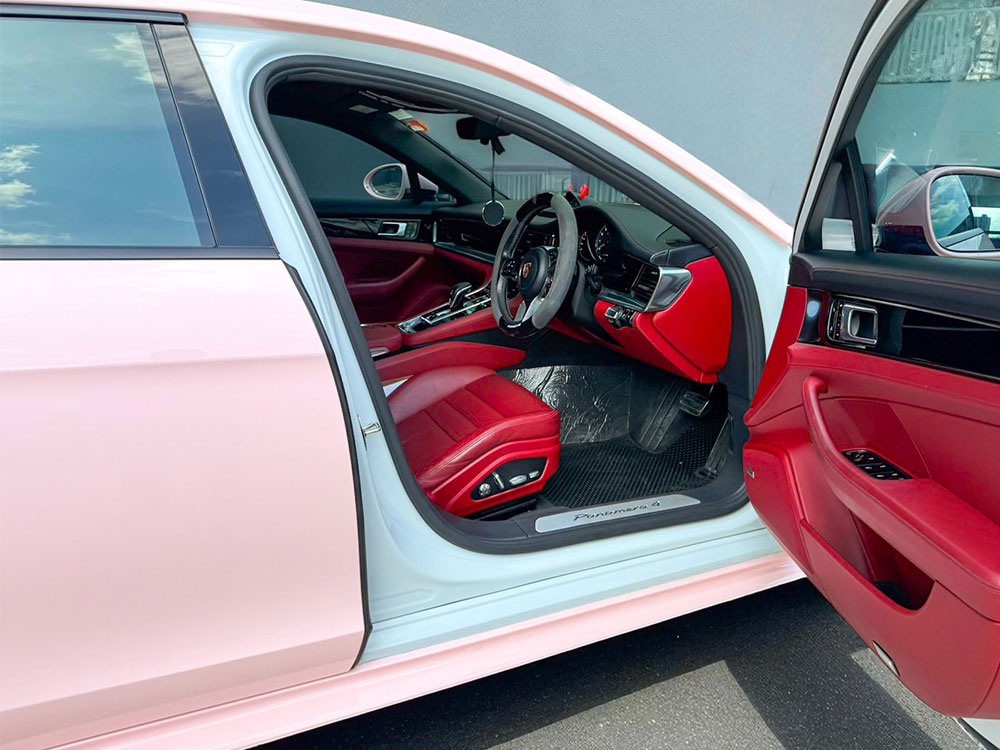 ดีไซน์โดดเด่นด้วยพื้นสีขาวสุดหรูหรา หุ้มด้วยฟิล์มสีชมพูสะดุดตา เหมาะอย่างยิ่งสำหรับงานแต่งงาน ถ่ายมิวสิกวิดีโอ ถ่ายแฟชั่น หรือท่องเที่ยวสุดชิคในวันหยุดสุดสัปดาห์ ภายในรถมาพร้อมกับความสะดวกสบายระดับพรีเมียม ฟีเจอร์ล้ำสมัย และความเร้าใจในการขับขี่ในแบบฉบับของ Porsche